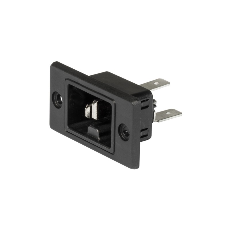 Built-in hot appliance socket in a thermoplast (TP) housing for devices of protection class I. These plugs are suitable for DC devices and can be applied via screw mounting. We offer various types of this Schuter series.