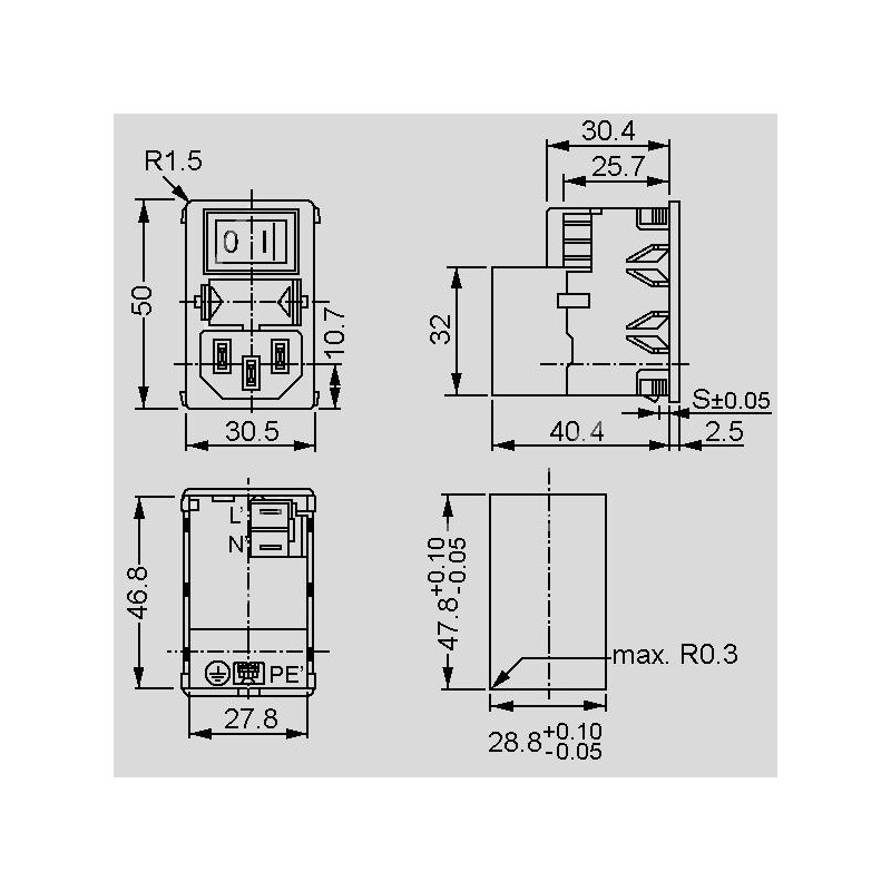 RFI filters in a metal housing with a 2-pole line switch, an IEC plug and a fuse holder for two 5x20mm fuses. These line filters are suitable for snap-in mounting and have connections for PCB mounting as well as a 4,8x0,8mm tab terminal. We offer the following types of this Schurter series: KMF1.1111.11, KMF1.1141.11, KMF1.1161.11 and KMF1.1191.11.