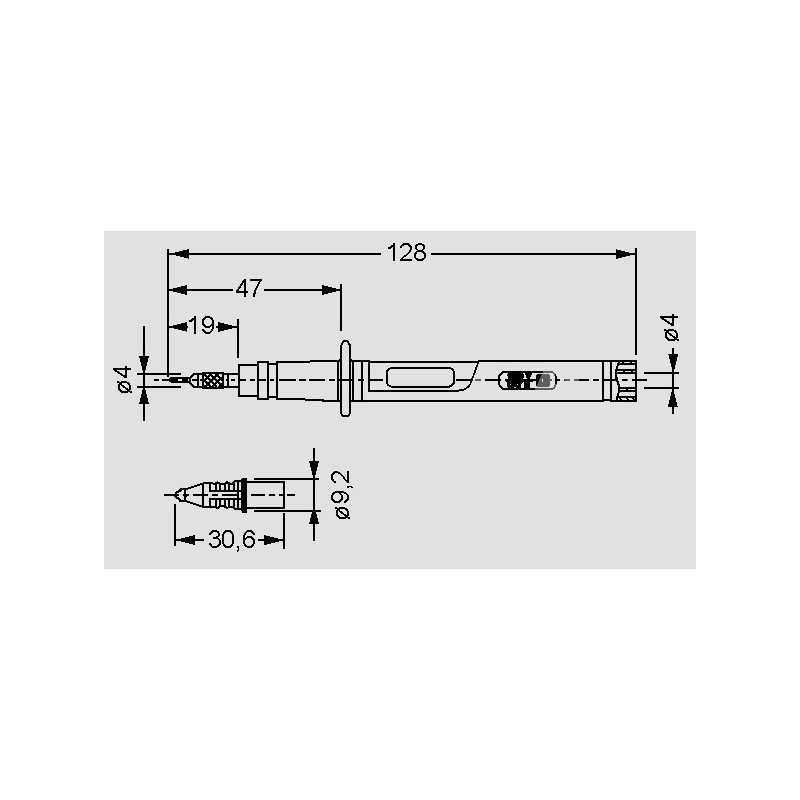 * both ends can be used individually. One end has a 5mm spring loaded steel tip, the oder end a rigid, hardened steel tip with a Ø 4mm lamelle-basket