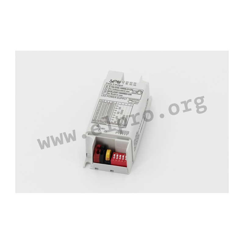 LED drivers in a plastic housing (IP20) with 35W, a constant current, protection class II, a dimming function and a DALI 2.0 interface. These SELV compliant devices have a selectable output current and are protected against short circuit, overload as well as overtemperature. They are suitable for LED lighting applications and comply with EN61347-1, EN61347-2-13, UL1310 as well as EN55015. We offer the type SLD35-1000IBD-UN as well as matching end panels 1099-000177-0131 (set of two) of this Self series.
