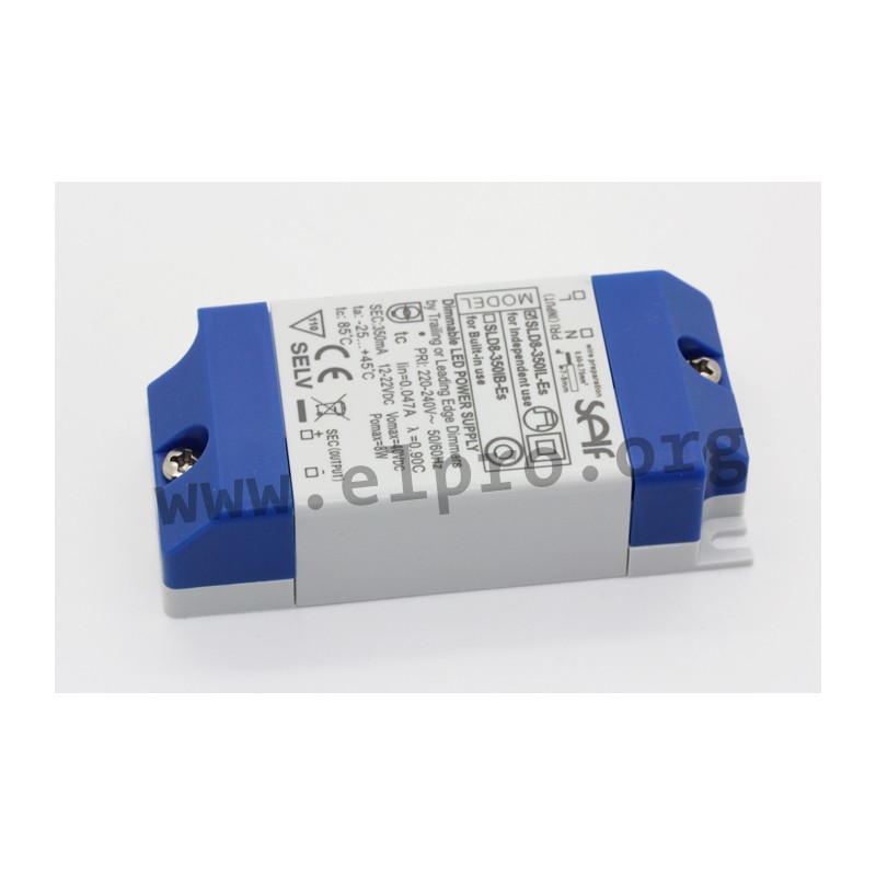 LED drivers in a plastic case (IP20) with 8W, a constant current and protection class II. These SELV compliant devices are suitable for LED lighting applications and are protected against short circuit, overload as well as overvoltage. They are dimmable and comply with EN61347-1, EN61347-2-13, EN55015 as well as EN61000-3-2. We offer the type SLD8-350IL-ES of this Self series.