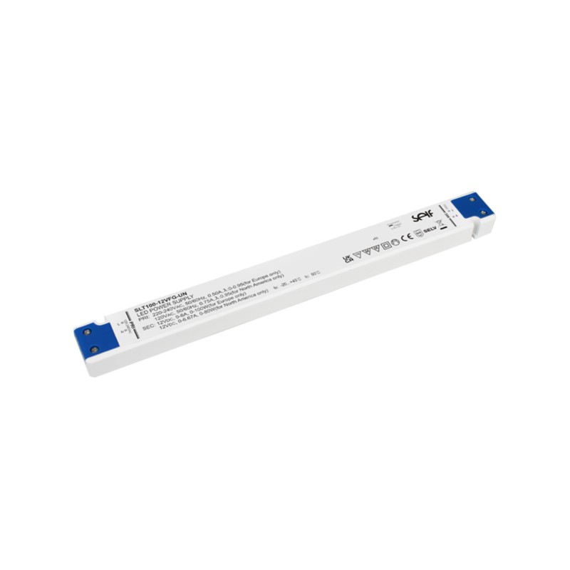 LED drivers in a plastic case (IP20) with 100W, a constant voltage and protection class II. These SELV compliant devices are protected against short circuit, overload, overvoltage as well as overtemperature. They are suitable for LED lighting applications and comply with EN61347-1, EN61347-2-13, EN55015 as well as EN61000-3-2. We offer the types SLT100-12VFG-UN, SLT100-24VFG-UN, SLT100-48VFG-UN, and SLT100-24VFG-UN3 of this Self series.