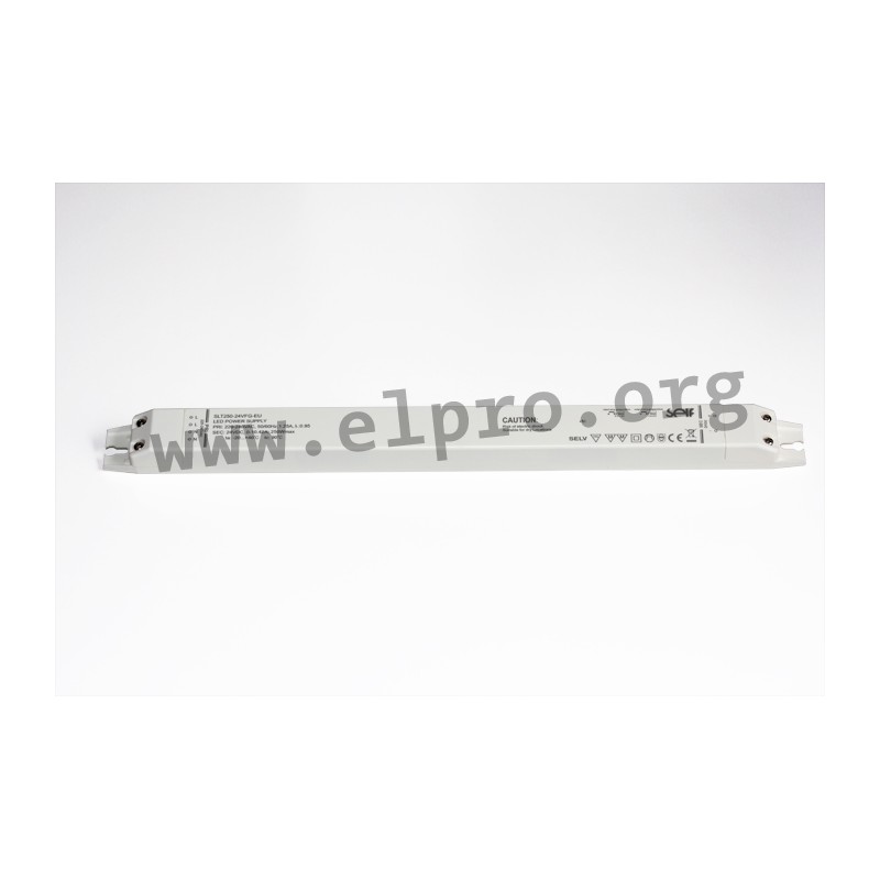 Flickerfree LED drivers in a plastic case (IP20) with 250W, a constant voltage and protection class II. These devices are suitable for LED lighting applications and are protected against short circuit, overload as well as overtemperature. They are not dimmable and comply with EN61347-1, EN61347-2-13, EN55015 as well as EN61000-3-2. We offer the following types of this Self series: SLT250-24VFG-EU and SLT250-48VFG-EU.