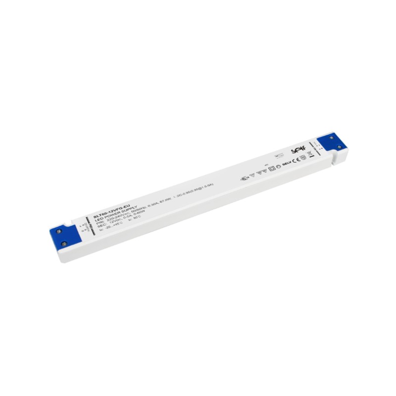 LED drivers in a plastic housing (IP20) with 60W, a constant voltage and protection class II. These SELV compliant devices are suitable for LED lighting applications and are protected against overload, overtemperature as well as short circuit. They are not dimmable. We offer the following types of this Self series: SLT60-12VFG-EU and SLT60-24VFG-EU.