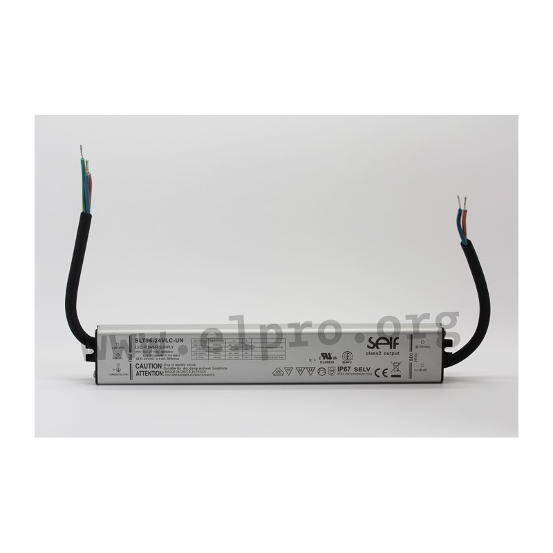 LED drivers in a metal housing (IP67) with 96W, a constant voltage and protection class I. These devices are suitable for LED lighting applications and are protected against overload, overtemperature, short circuit as well as overvoltage. They are not dimmable and comply with EN55015, EN61347-1 as well as EN61347-2-13. We offer the following types of this Self series: SLT96-12VLC-UN and SLT96-24VLC-UN.