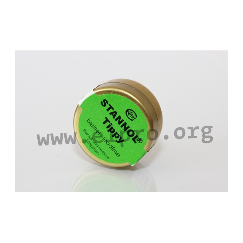 For cleaning and tinning of soldering iron tips in a single operation. Sweep the soldering tip over the surface of ecoloy Tippi, turning it gently. The soldering tip temperature should lie between 250°C and 450°C. The cleaning and tinning improves as the temperature increases. Finally, wipe the tip clean with a moist sponge.