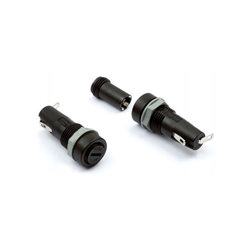 Front pannel fuse holders for 5x20mm G-fuses, with solder lugs, and for mounting using screw nuts. We offer various types of this Stelvio Kontek series.