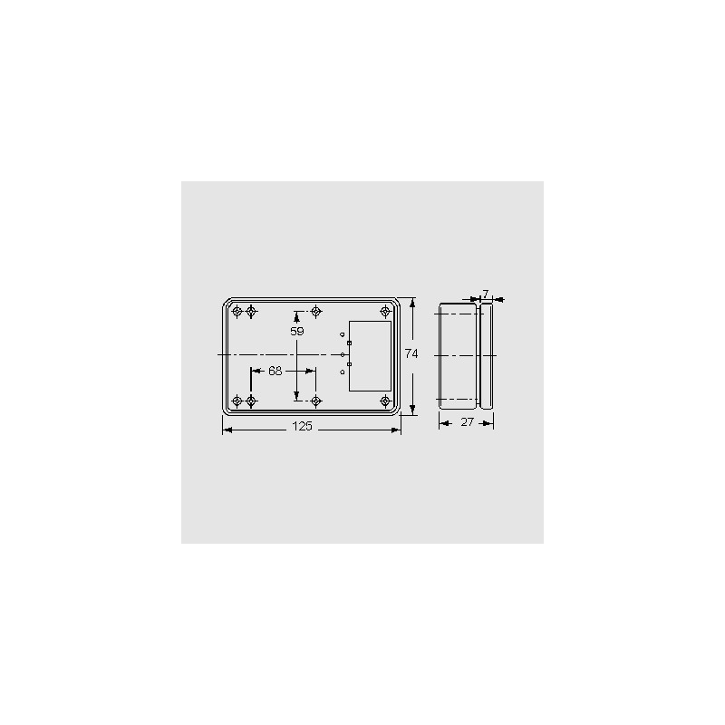 * small, black ABS enclosure with battery compartment for a 9V block battery