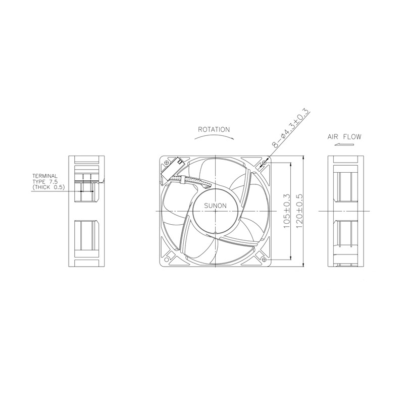 AC fans with a patented one-phase single coil DC brushless motor design. The frame and impeller of these fans are made of thermoplastic PBT (UL94V-0) material, which ensures durability and reliability. These AC axial fans come equipped with terminal connectors for easy installation. These 120x120x38mm dimensioned AC axial fans have ball bearing systems that ensure smooth operation even in harsh environments. They offer two different protection classes: CF4113_AA9 has IP21 protection class while CF4113_AB9 offers IP55 protection class against dust and water ingress. Rated voltage for these AC axial fans is 110/230VAC, but they can operate within the range of 90 to 265VAC without any issues. With dielectric strength at 65% humidity, measuring up to 1800VAC for one minute, insulation resistance at 500 VDC exceeding >10MΩ and operating temperature ranging from -25°Cto +70°C; these fan sare highly efficient and reliable products suitable for various applications across industries.