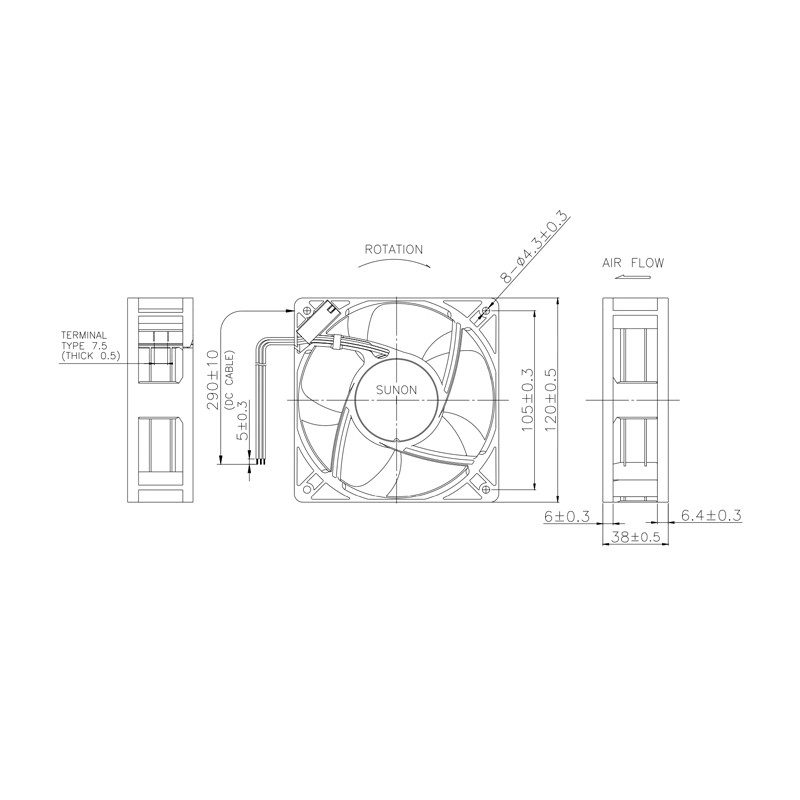 AC fans with a patented one-phase single coil DC brushless motor design. The frame and impeller of these fans are made of thermoplastic PBT (UL94V-0) material, which ensures durability and reliability. These AC axial fans come equipped with terminal connectors for easy installation. These 120x120x38mm dimensioned AC axial fans have ball bearing systems that ensure smooth operation even in harsh environments. They offer two different protection classes: CF4113_AA9 has IP21 protection class while CF4113_AB9 offers IP55 protection class against dust and water ingress. Rated voltage for these AC axial fans is 110/230VAC, but they can operate within the range of 90 to 265VAC without any issues. With dielectric strength at 65% humidity, measuring up to 1800VAC for one minute, insulation resistance at 500 VDC exceeding >10MΩ and operating temperature ranging from -25°Cto +70°C; these fan sare highly efficient and reliable products suitable for various applications across industries.