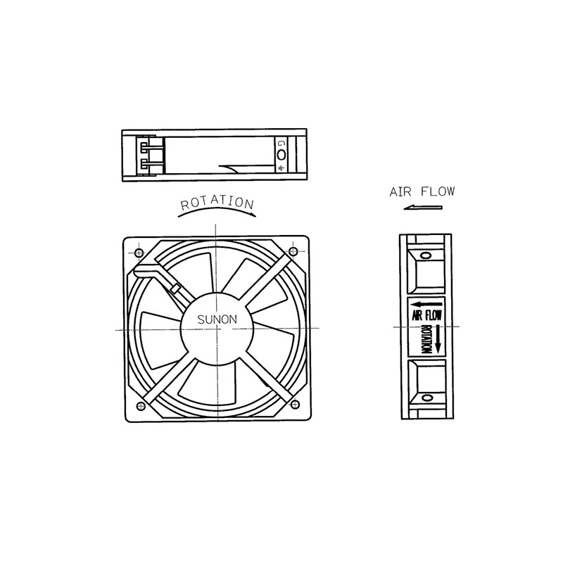 AC fans with diecast aluminium frames, shaded-pole motors and impedance protection are available in sleeve bearing (LFD 220V G / DP_HS_) or ball bearing systems (LFD 220V K / DP_HB_ / DP_LB_). These fans feature impellers made of thermoplastic PBT (UL94V-0) and connection through a tab terminal measuring 2.8x0.3mm. They can operate under temperatures ranging from -10 to +70°C and have dimensions of 120x120x25mm while being rated at a voltage of 230V AC.