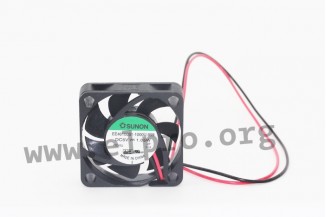 DC axial fans with dimensions of 40x40x10mm and an operating voltage of 5V DC, available as a four-pole version with the option to choose between sleeve bearings (EE_) or vapor bearings (MF_). The impeller and frame are made from filled thermoplastic UL94V-0 and feature a magnetic levitation system. They are connected through AWG26 gauge wires for easy installation.