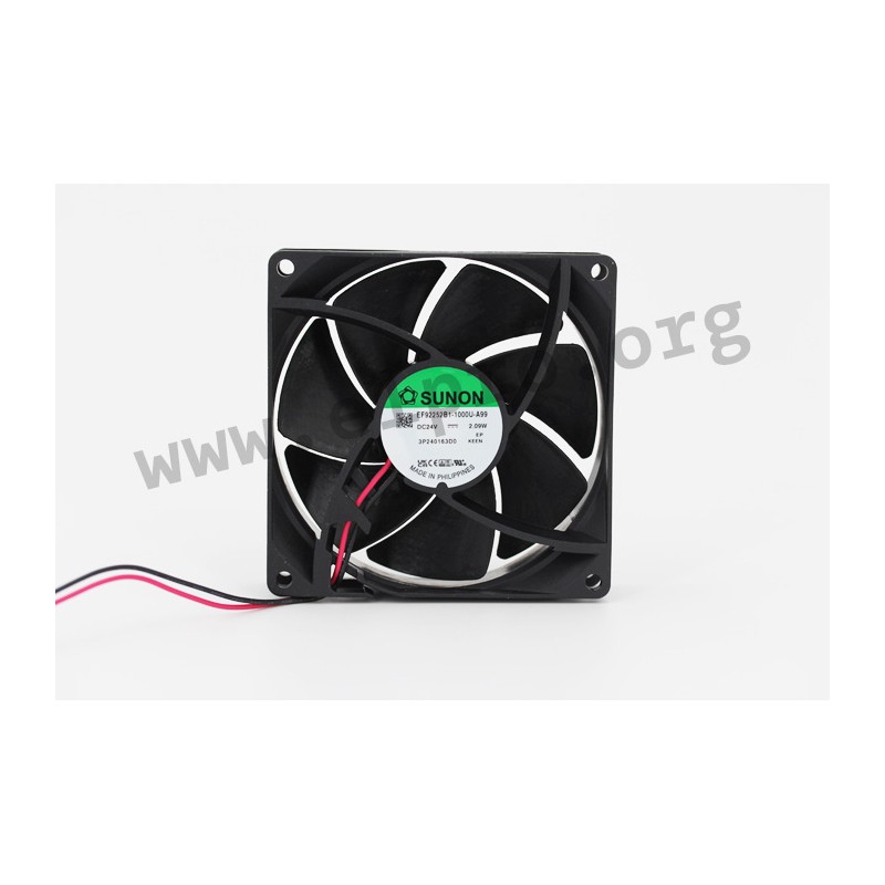 4-pole DC fans with a ball bearing (E_B), a vapo bearing (M_V/PF_), a sleeve bearing (E_S) or a two ball bearing (GE_) system. The connection is made through wires AWG24, UL1007 which are stripped and tinned for easy installation. Both the frame and impeller of these fans are constructed from thermoplastic PBT material that meets UL94V-0 standards for safety. They have an insulation class rating of A, making them suitable for use in a variety of applications where high reliability is required. With dimensions measuring 92x92x25mm and rated voltage at 24V, these DC fans provide efficient cooling solutions while maintaining low noise levels during operation.
