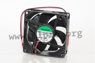 Four-pole DC fans with a 4-pole brushless DC motor and a ball bearing (EE_B), a sleeve bearing (EE_S), a vapo bearing (ME_/MF_) or a two ball bearing (GE 80252_) system. These fans are partly designed as one-phase single coil DC brushless motors (EF_/MF_) and have an impeller and frame made of thermoplastic PBT (UL94V-0). The connection is through wires UL1007 AWG24 that are stripped and tinned. They have insulation class A with dimensions of 80x80x25mm. Rated voltage for these fans is at 24VDC.