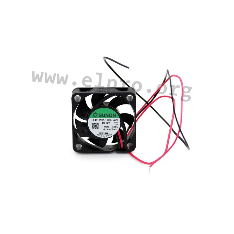 DC fans with a 4-pole brushless DC motor and options for either sleeve bearing, vapo bearing or ball bearing system (_4010_S_, _4010_V_ or _4010_B_) are available. These fans have frames and impellers made of thermoplastic PBT (UL94V-0) along with the Magnetic-Levitation-System. Connection is by wire AWG26 (stripped, tinned). They can operate within a temperature range of -10 to +70°C, have dimensions of 40x40x10mm and require a rated voltage of 12V DC.