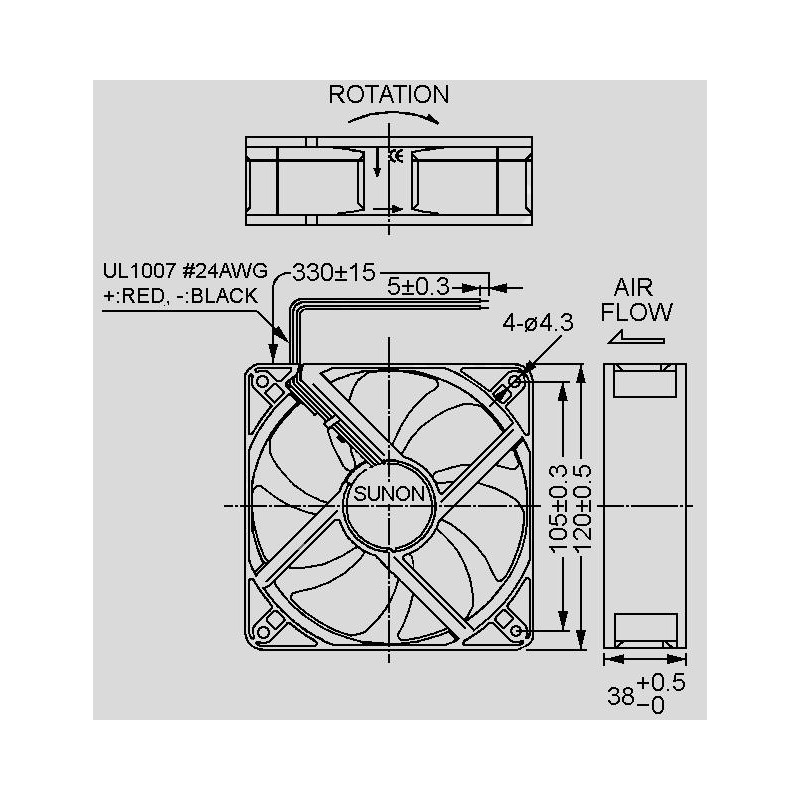 4-pole DC fans with either a vapo bearing system (MEC) or a two ball bearing system (EEC_) are available. These fans feature impellers and frames made of filled thermoplastic that meet UL94V-0 standards, ensuring high safety levels. Connection is established through stranded wires UL1007 AWG24 for easy installation. The Magnetic Levitation System ensures quiet operation while maintaining stable performance even under heavy loads. With dimensions of 120x120x38mm and rated voltage of 12V DC, these fans can be used in various applications requiring efficient cooling solutions without compromising on noise reduction capabilities.