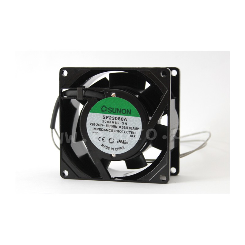 AC fans with a sleeve bearing (LFB 220V G) or a ball bearing system (LFB 220V K) and dimensions of 80x80x38mm. These fans are equipped with a shaded-pole motor that is impedance protected, an aluminium spray cast frame, and a filled thermoplastic PBT (UL94V-0) impeller. The lead wire is AWG24, stripped and tinned at 30cm length. They have a rated voltage range of 185 to 245V AC. With dielectric strength measured at 1500V AC for one minute under 65% relative humidity conditionsand insulation resistance exceeding 500MΩ when tested at 500V DC Conductivity, the operating temperature ranges from -10 to +70°C making them suitable for various applications requiring efficient cooling solutions in different environments without compromising on performance quality or safety standards.