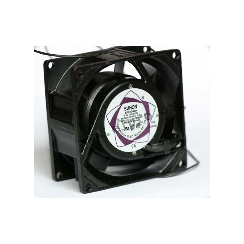 AC fans with a sleeve bearing (LFB 220V G) or a ball bearing system (LFB 220V K) and dimensions of 80x80x38mm. These fans are equipped with a shaded-pole motor that is impedance protected, an aluminium spray cast frame, and a filled thermoplastic PBT (UL94V-0) impeller. The lead wire is AWG24, stripped and tinned at 30cm length. They have a rated voltage range of 185 to 245V AC. With dielectric strength measured at 1500V AC for one minute under 65% relative humidity conditionsand insulation resistance exceeding 500MΩ when tested at 500V DC Conductivity, the operating temperature ranges from -10 to +70°C making them suitable for various applications requiring efficient cooling solutions in different environments without compromising on performance quality or safety standards.