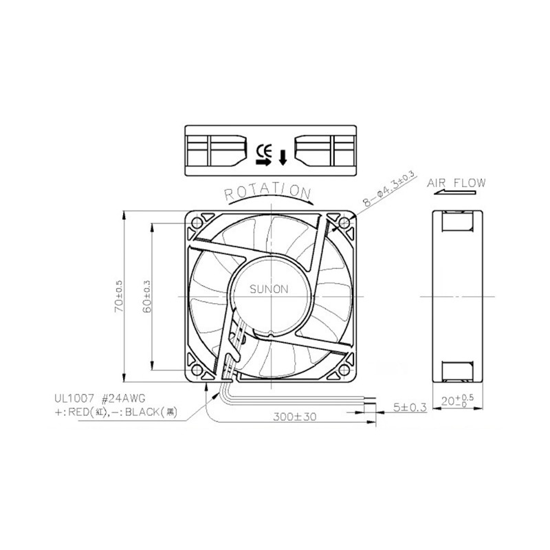 DC fans in a 70x70x20mm housing. These fans have a vapo bearing system and frames as well as impellers made of thermoplastic PBT (UL94V-0). They have a MagLev System and are quiet as well as low-vibration. We offer various types of this Sunon series.