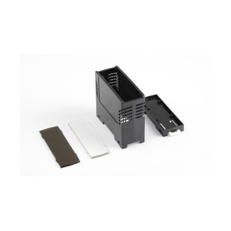 DIN rail housings made of Acrylnitril-Butadien-Styrol (ABS), and available in diverse dimentions and in the colours gray or black. These plastic housings are suitable for DIN rail mounting and they confirm with protection type IP44. Additionally, the type PR132N-S is equipped with ventilation openings. We offer the following types of this Supertronic series: PR115G-S, PR125G-S, PR132N-S, and PR152G-S.