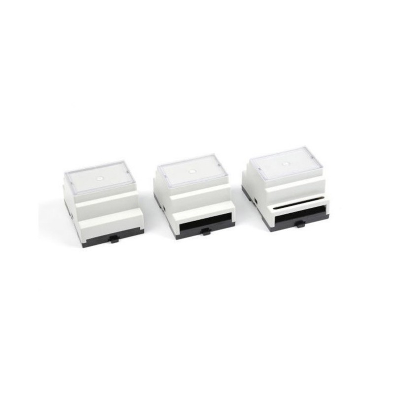 DIN rail housings made of Acrylnitril-Butadien-Styrol (ABS), available in diverse colours and dimensions. These plastic enclosures are suitable for DIN rail mounting and confirm with protection type IP44. We offer various types of this Supertronic series.