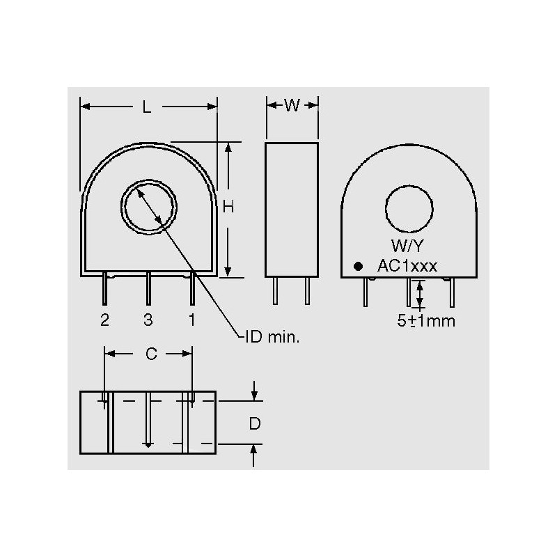 6316AC 40 A AC-1040AC-1040current transformers for 50/60Hz. * for optimal PC board mounting* fully potted* centerhole for current-carrying line* high output voltage* turns ratio: 1000:1* terminating resistor: 100Ω