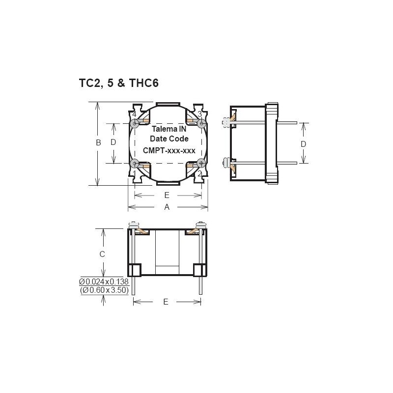 29575CMPT-5,60-0,59 CMPT-5.6-0.59CMPT-5.6-0.59current compensated suppression chokes. * vertical* by Talema* designed for DC/DC Converters* two separated windings for minimum capacitance* terminals through 4 tin soldered-in pins* operating temperature -40 to 125°C* meets lead free reflow level J-STD-020C