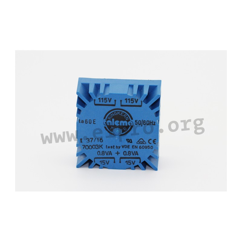 Toroidal PCB transformers in a fully potted housing with 1,6VA. These transformers are suitable for PCB mounting and are not short-circuit-proof. They have very low iron losses and a high efficiency. We offer the following types of this Talema series: 70000K, 70001K and 70003K.