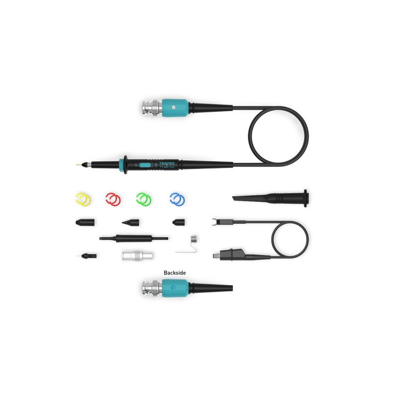 Passive test probes, for oscilloscopes with a cable length of 1,2m. We offer the following types of this Testec series: TT-LX 112, TT-LX 212, TT-LX 312, and TT-MX 312.
