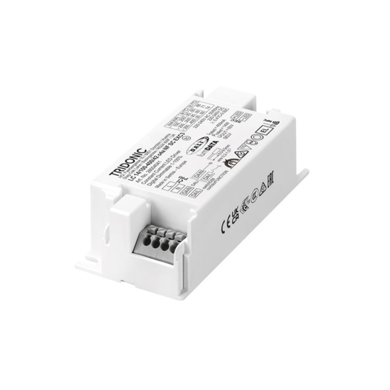 LED power supplies with a Dali-2 push-dimm connection and a output power of 14W. These power supplies for lights in a plastic housing have a programmable and choosable output current, as well as they are suitable for DC application. We offer the type 28004041 of the LC 14W 100–400mA o4a NFC SC EXC series of Tridonic Deutschland.
