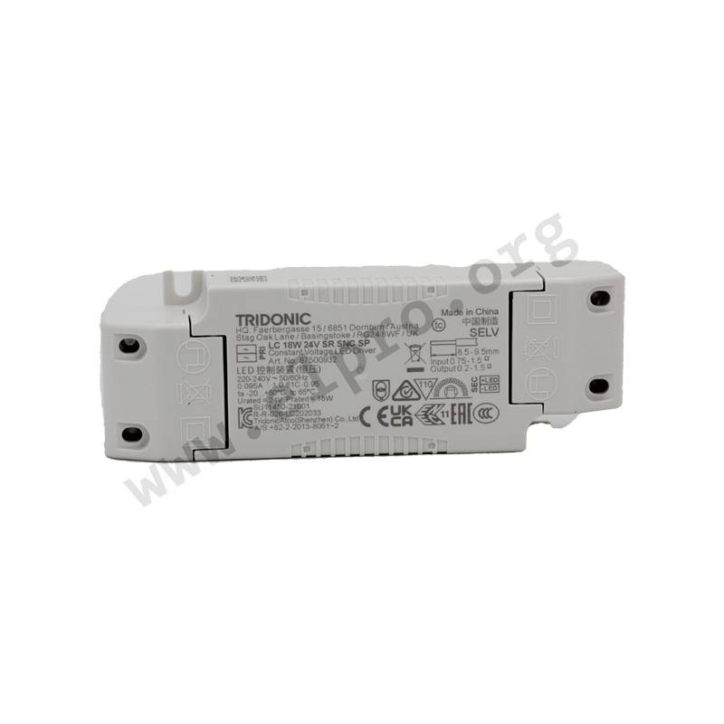 LED power supplies with a Dali-2 push-dimm connection and a output power of 18W. These power supplies for lights in a plastic housing have a programmable and choosable output current, as well as they are suitable for DC application. We offer the type 87500932 of the LC 18W 24V SR SNC of this Tridonic Deutschland.