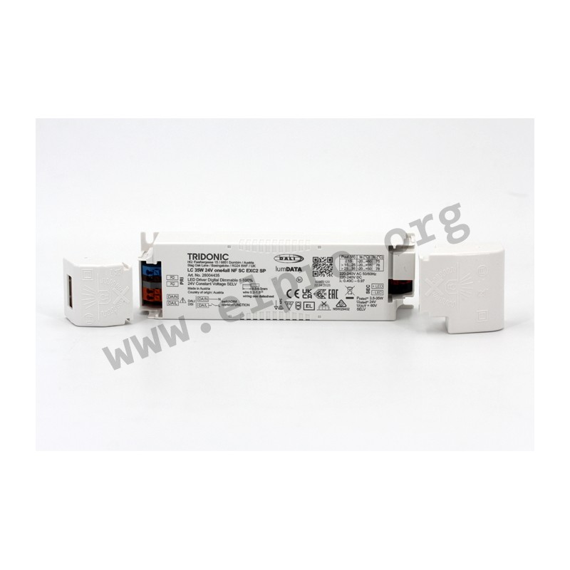 LED power supplies with a Dali-2 push-dimm connection and a output power of 35W. These power supplies for lights in a plastic housing have a programmable and choosable output current, as well as they are suitable for DC application. We offer the type 28004435 of the LC 35W 24V one4all NF SC EXC2 SP of this Tridonic Deutschland.
