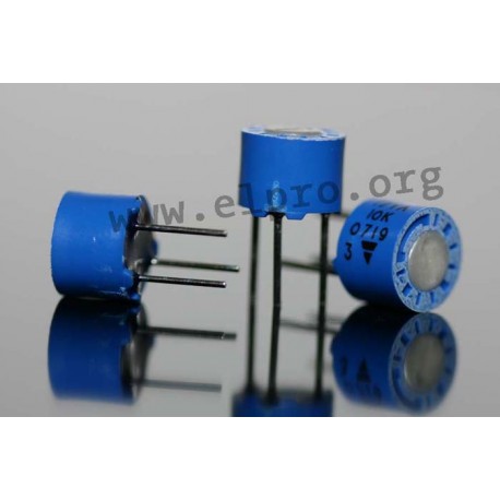 High stability trimmer potentiometers with a low temperature coefficient and easy to read scale. They are only 7mm (0.275”) in diameter and come in a sealed plastic case. We offer various types of this Vishay series.