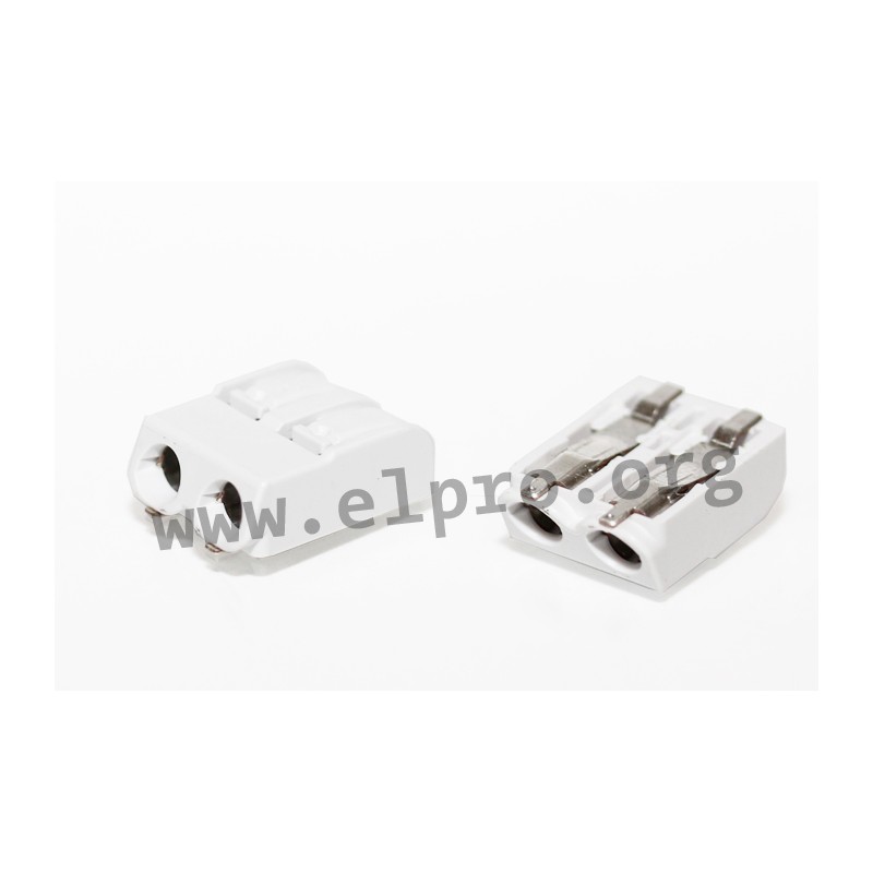 1- to 3-pole spring terminal blocks in grey with a screwless spring/clamp connection (push-in CAGE CLAMP® connection). They have a lever and are suitable for a wire cross section of 0,5 to 1,5mm2. We offer tvarious types of this Wago series.