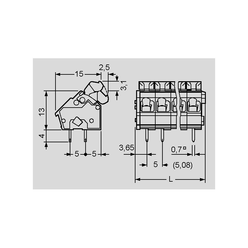 pitch: 5mm (adjustable to 5,08mm)