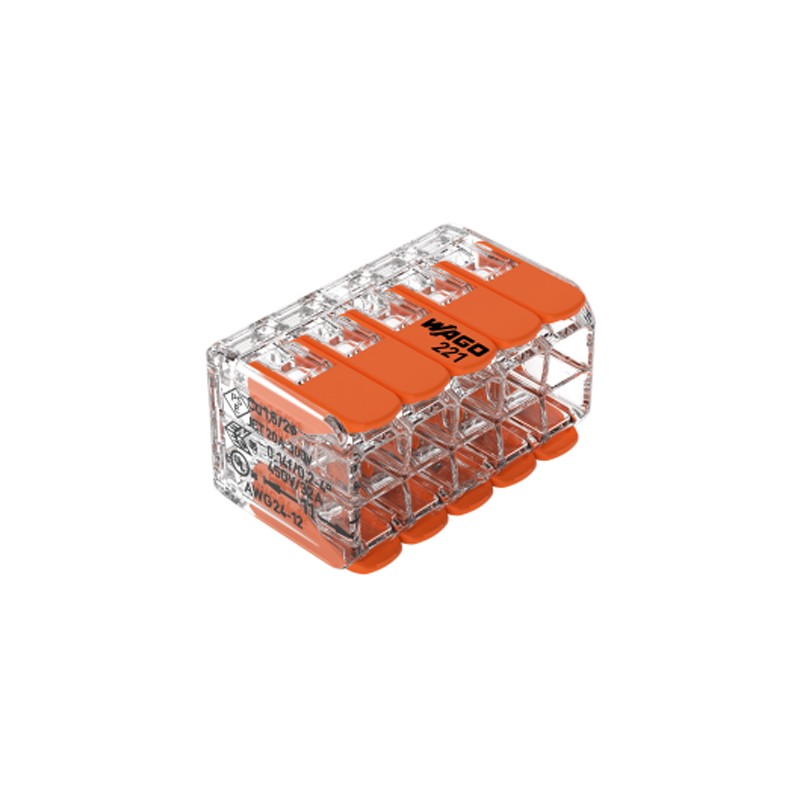 2-, 3- and 5-conductor connectors for all types of conductors with CAGE CLAMP® connection, and push-in operating levers. They have a side wire entry and are suitable for a wire cross section of 0,2 to 6mm2 (solid-core/multi-wired) resp. 0,14 to 6mm2 (fine-stranded). Furthermore, matching mounting adapters with (221-250_/221-251_) or without a strain relief (221-252_/221-253_) are available. We offer various types of this Wago series.