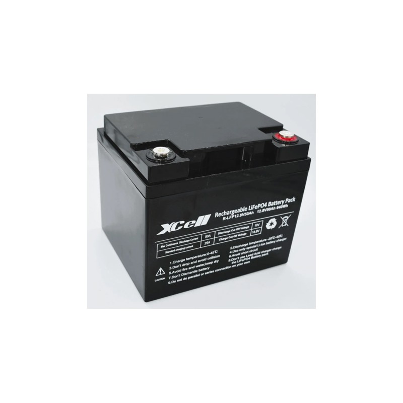 Lithium ion batteries with a rated voltage of 12,8V and a rated capacity of 6.000mAh to 100.000mAh. These accus come in a plastic housing and are protected against over voltage, under voltage, over temperature, as well as short circuit. We offer the following types of this XCell series: LFP126, LFP129, LFP1212L, LFP1212S, LFP1218, LFP1224, LFP1250L, and LFP12100.