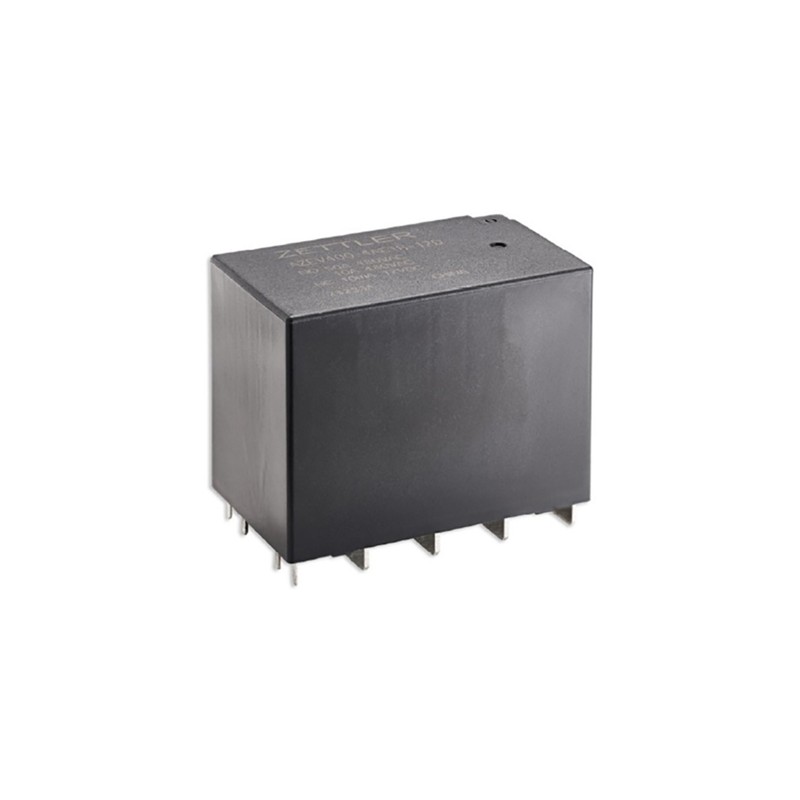 Relays in a 58,6x35x45,3mm housings made of PBT (UL94V-0) with 50A, 4PST-NO/SPST-NC contacts, and minimum contact gap of 4mm. These devices are flux-tight (RTII), suitable for THT mounting, and have a dielectric strength of 10kV. We offer various types of this Zettler series.